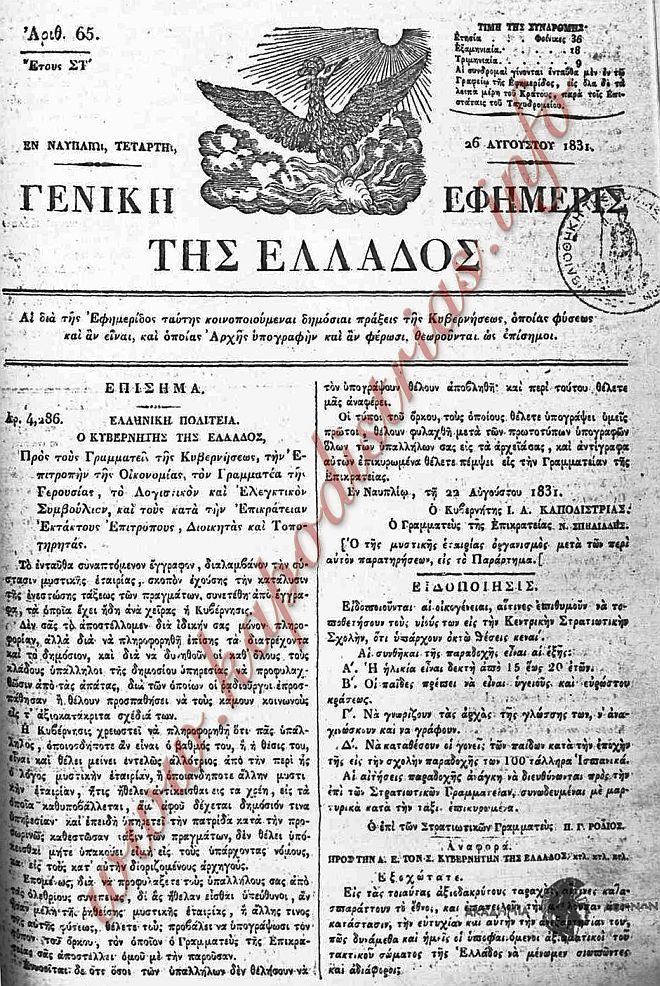 γαίες από τους εξεγερμένους Έλληνες προέρχεται από την Πελοποννησιακή Γερουσία,